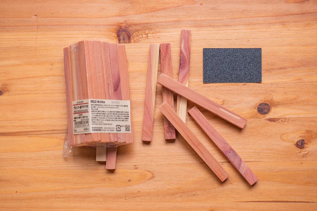- レッドシダーブロック・紙やすり付20本入(499円)